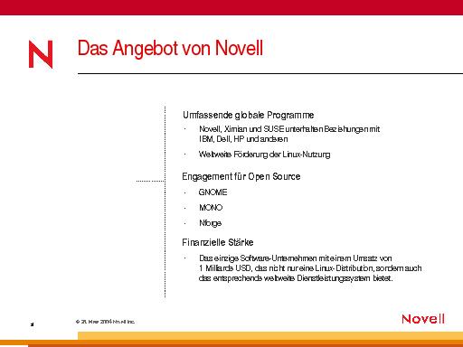 Das Angebot von Novell