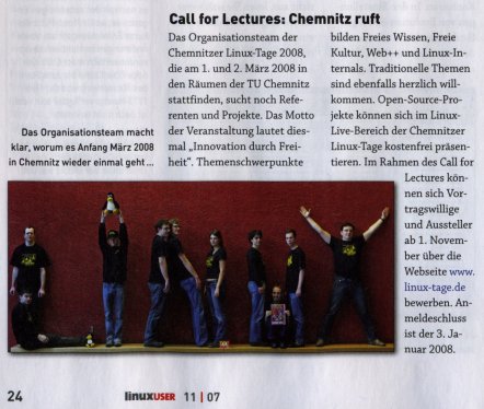 Die Chemnitzer Linux-Tage sind ein Projekt des IN-Chemnitz e.V. |